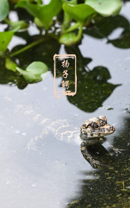 ↑2021年7月6日,扬子鳄幼鳄在安徽扬子鳄国家级自然保护区孵育中心幼鳄饲养区的池塘内活动。