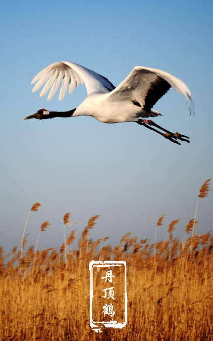 ↑2019年1月10日,在黑龙江扎龙国家级自然保护区,一只人工繁育的丹顶鹤在空中飞翔。