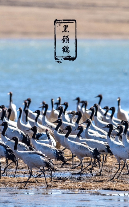 ↑2022年1月14日在云南昭通大山包黑颈鹤国家级自然保护区拍摄的黑颈鹤。