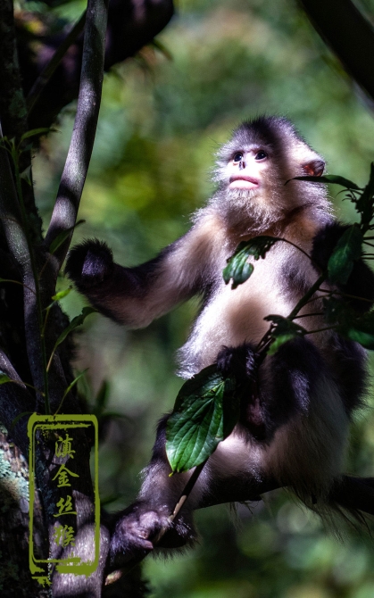 ↑2021年7月19日在云南迪庆藏族自治州香格里拉滇金丝猴国家公园里拍摄的滇金丝猴。