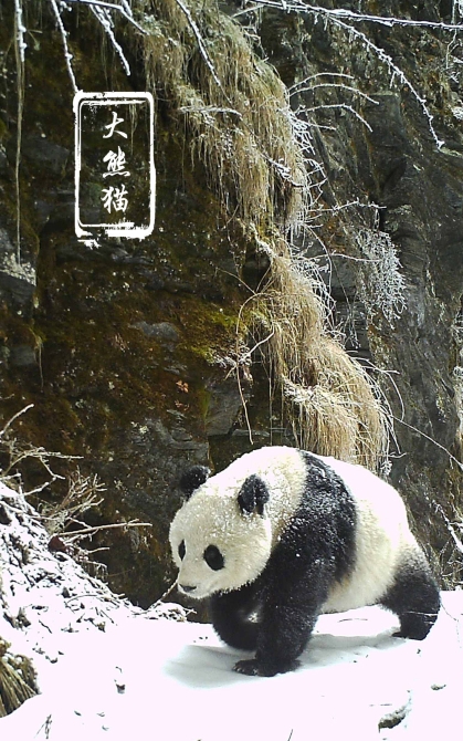 ↑2021年3月1日在大熊猫国家公园北川小寨子沟片区用红外相机拍摄的野生大熊猫。