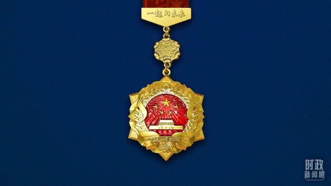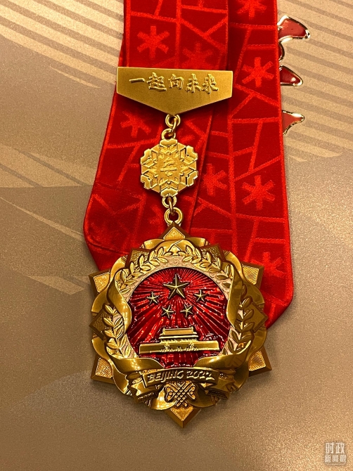 △北京冬奥会、冬残奥会突出贡献集体奖牌。(总台央视记者胡玮拍摄)