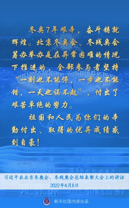 习近平总书记重要讲话金句来了!“再一次共创了一场载入史册的奥运盛会,再一次共享奥林匹克的荣光。”