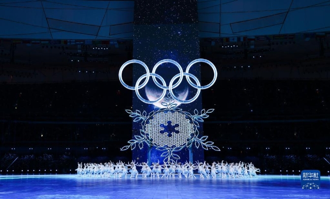 2022年2月4日,第二十四届冬季奥林匹克运动会开幕式在北京国家体育场举行,这是开幕式上的“构建一朵雪花”环节。新华社记者 曹灿/摄