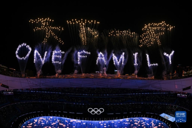 2022年2月20日,第二十四届冬季奥林匹克运动会闭幕式在北京国家体育场举行,这是闭幕式上的焰火表演。新华社记者 宋彦桦/摄