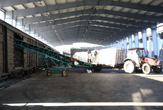 4月8日,装载牛奶等乳制品的援沪货运列车从尚志站装运完毕,即将奔赴2000公里外的上海北郊站。自4月初以来,中国铁路哈尔滨局集团有限公司已先后六批次从黑龙江省齐齐哈尔、绥化、五常等地开行40余辆重点物资货运列车,运送大米、牛奶等生活物资1400余吨驰援上海疫情防控一线。