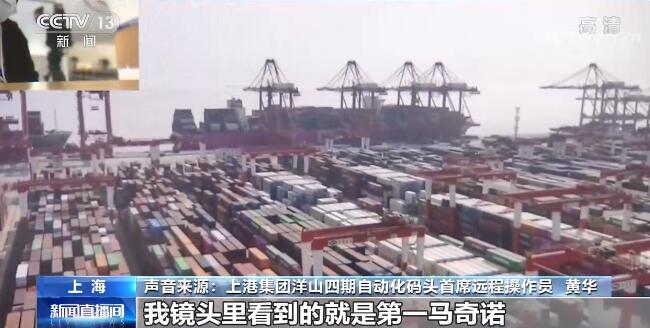 上港集团洋山四期自动化码头首席远程操作员 黄华:我镜头里看到的就是第一马奇诺,这个船是晚上七点钟开,这个船要到后天才开。