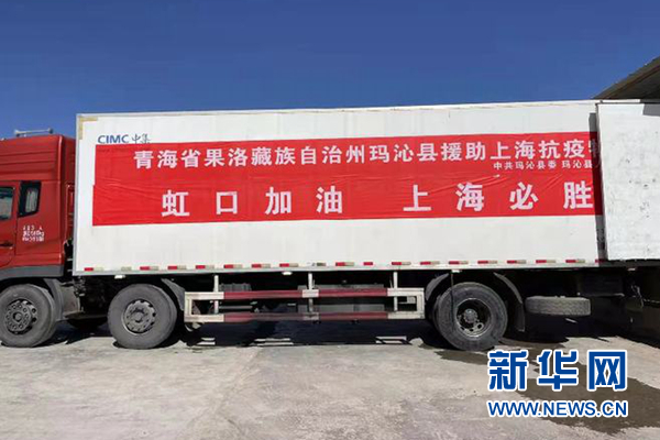 “众志成城,同心守‘沪’”“果洛人民始终与上海携手同在”……满载物资的运输车上悬挂着鼓舞人心的标语,将来自高原人民的深切关怀和暖暖情谊带向上海。