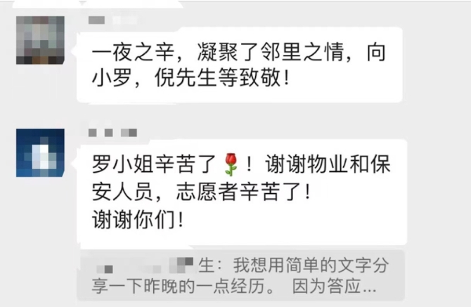 我们三位志愿者只是在某一个夜晚,帮了一点小忙。那过去的七八天里,小罗他们、志愿者们和业委会的大家,又为我们小区付出了多少呢?