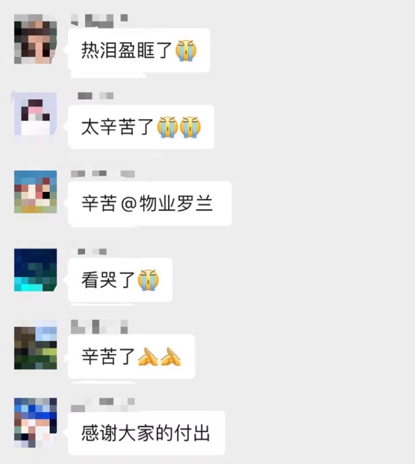 4月7日早上,我醒来后就将凌晨做志愿者的“初体验”分享在了小区业主群里。没想到的是,一个简单的文字记录,忽然唤醒了大家内心深处对小区的感动,都在群里感谢物业、保安的工作,表达敬意,致敬他们在疫情期间为小区和居民的付出。