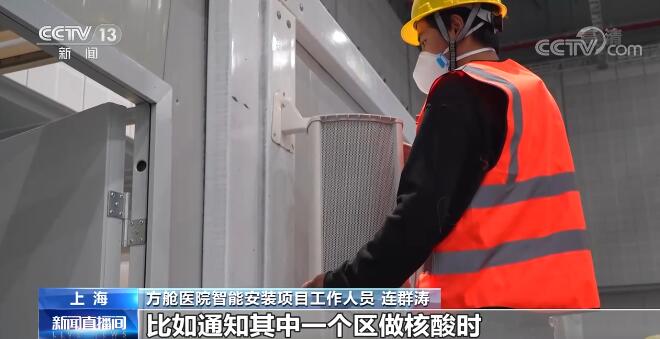 方舱医院智能安装项目工作人员 连群涛:我们在每个区域都安装了一套简便的广播设备,比如通知其中一个区做核酸时,其他区域不受(广播)影响。