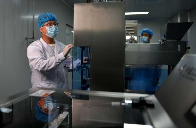 尚德艾康药业工作人员正在胶囊填充车间工作。记者马建荃/摄