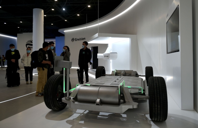 远景现代能源装备制造项目园区的动力电池展示。记者马建荃/摄