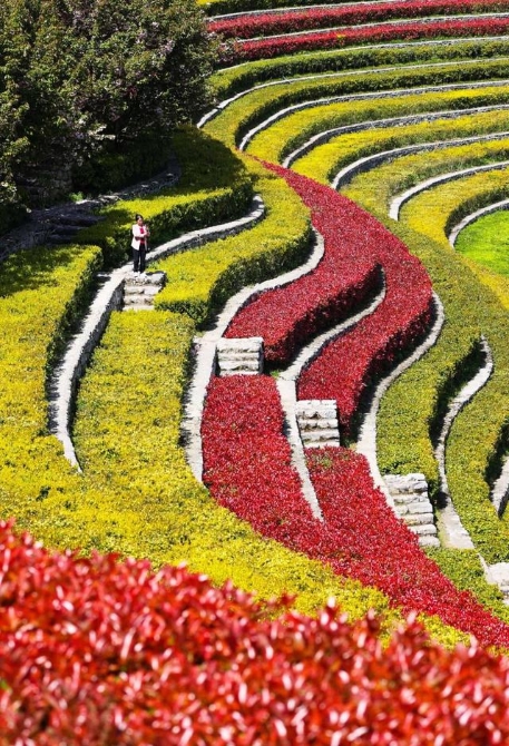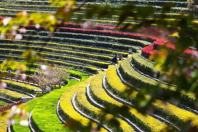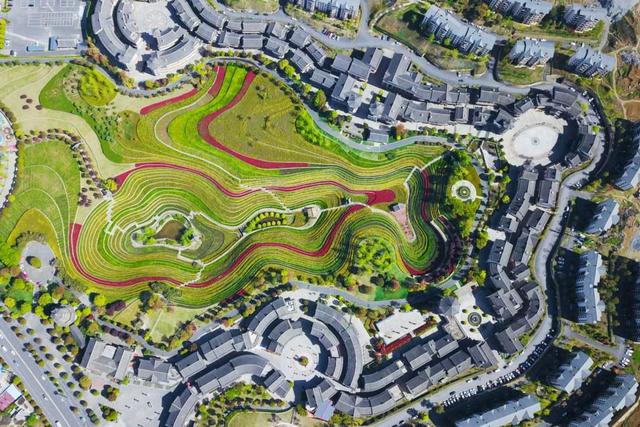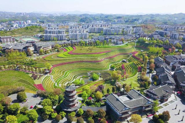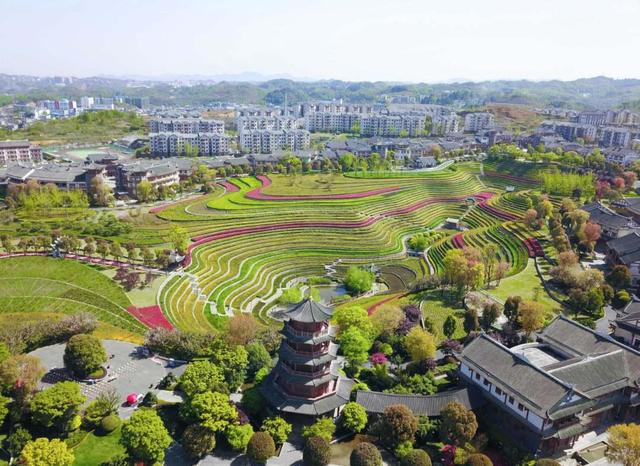 奢香古镇是贵州省毕节市大方县易地扶贫搬迁安置区,当地在规划建设时把田园风光带入城镇,在古镇中心建设了12万平方米的“城市梯田”,种植菊花、玫瑰花等观赏类植物,并成为了新的旅游景点,常年吸引游客前来观光赏景。(王纯亮/摄)