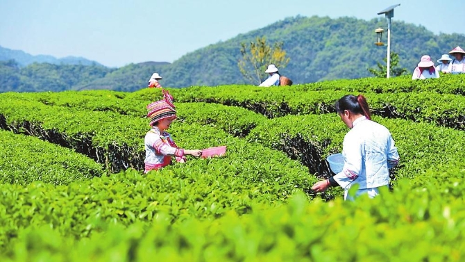 日前,广南县坝美镇石山农场1.2万亩茶园迎来了春茶采摘季,茶农们正抢抓黄金时期采摘春茶。近年来,该县把茶产业作为富民强县的重点产业来抓,努力推进茶产业向绿色化、有机化发展。截至目前,全县茶叶种植面积达38.34万亩,可采摘面积18.2万亩,茶叶年产量0.75万吨。(云南日报 李丽)
