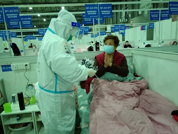 “我们在防护服上写上了‘上海加油’‘我来守沪’。身上贴的‘湖北省中医院’标识被舱里的叔叔阿姨们看到后,得知我们远道而来,纷纷招手向我们表示欢迎。还有不少病人主动帮忙分发饭菜。”护士万好平告诉记者。