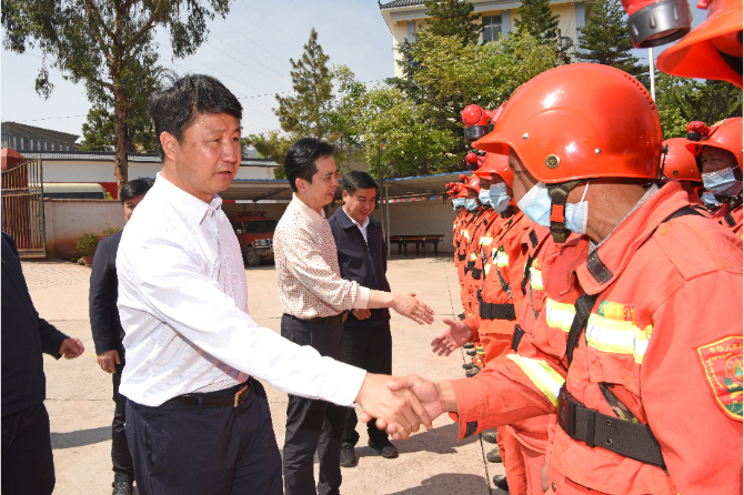 州委书记刘勇在姚安县森林消防专业队看望慰问森林消防值守队员。