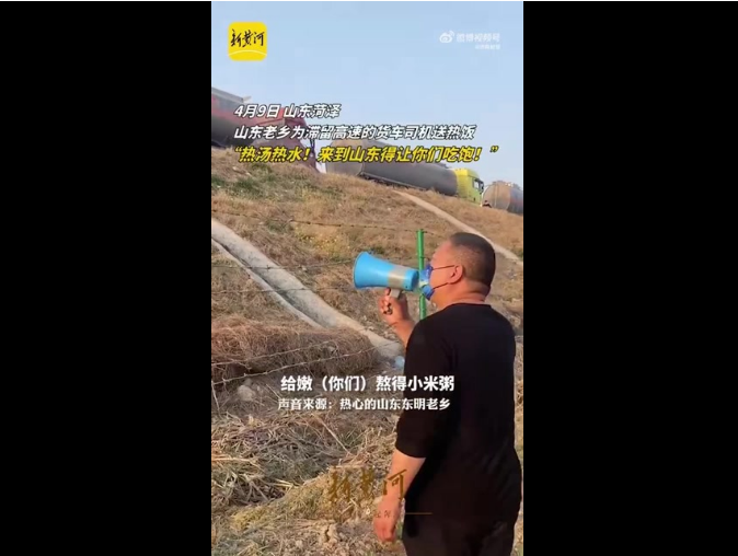 自发架起大锅,冒雨为滞留司机做饭