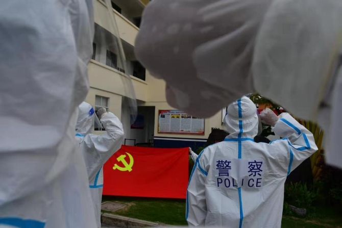 “党旗所指,行动所向。越是危难时刻,我们越要做好群众坚强的后盾,为群众排忧解难,做好群众贴心人,有群众的信赖和支持,再苦再累也值!”。战疫先锋队队长杨济源说。(中国日报云南记者站)