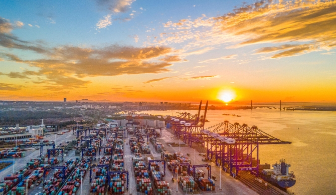 △海南,洋浦国际集装箱码头。(图/视觉中国)