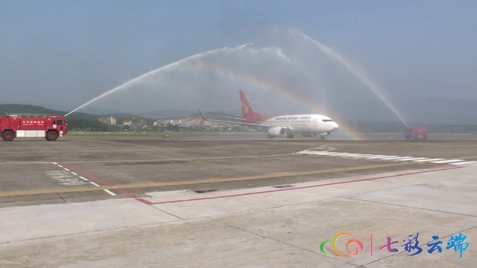 上午9点,由昆明航空执行的KY3221/2货运包机徐徐降落在西双版纳机场,机场以民航界最高礼遇“过水门”仪式迎接首架茶叶包机的到来。