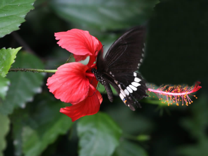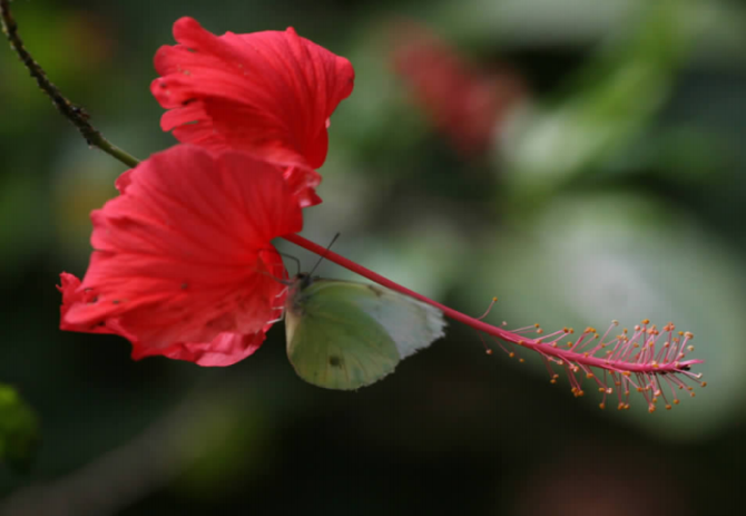 在日常生活中,可以见到的朱槿品种不是很多。许多市民在公园中看到的朱槿,往往是被称为大红花、扶桑的朱槿。这类朱槿常常和垂花悬铃花生长在一起,让人难以区分。