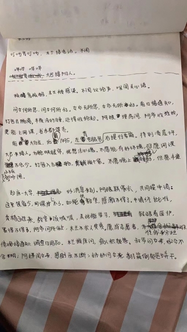 楼薇女儿在方舱内根据《木兰诗》改写的记录。