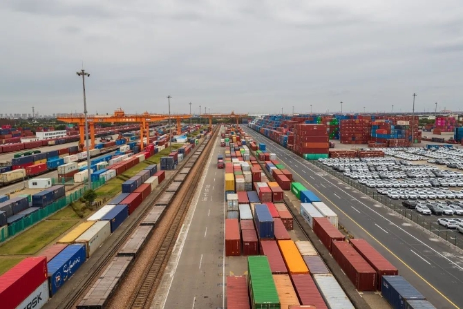 图为繁忙的上海芦潮港站集装箱堆场。李 忱摄