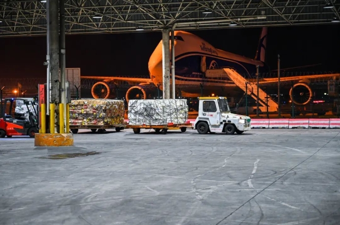 日前,上海浦东国际机场在转运货物。(浦东机场供图)