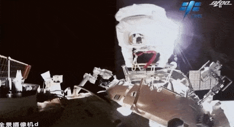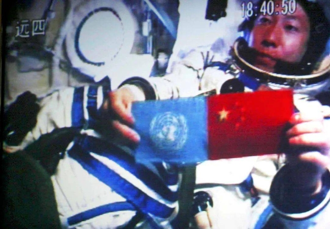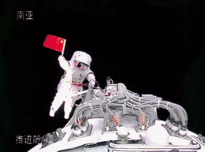 翟志刚在太空中展示五星红旗的那一刻