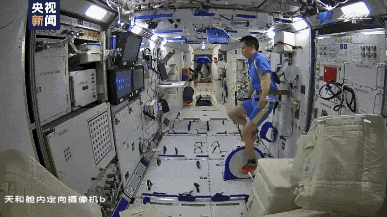△汤洪波在中国空间站里锻炼身体