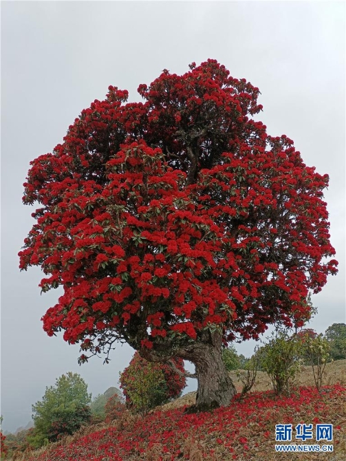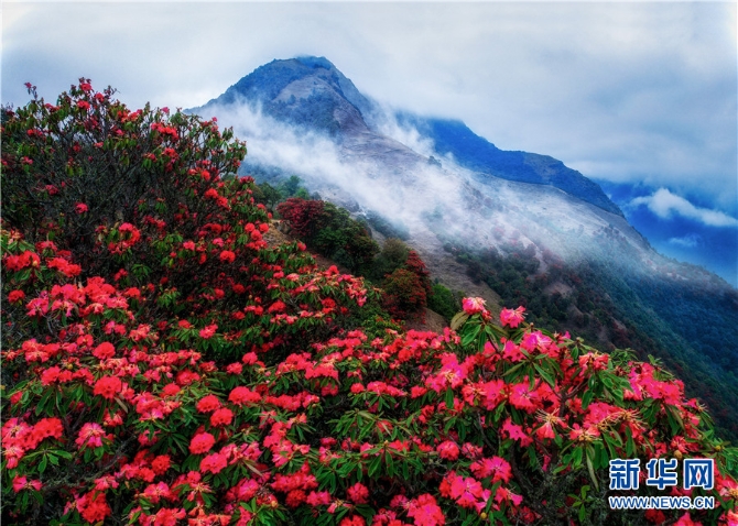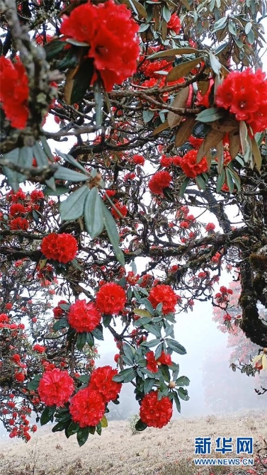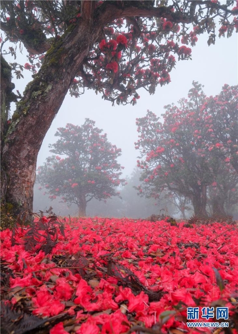 近期,云南大理苍山上的杜鹃花竞相绽放,漫山红遍,层林尽染。特别是雾中看花,别有一番韵味。(新华网 杨继培 王金灿摄影报道)