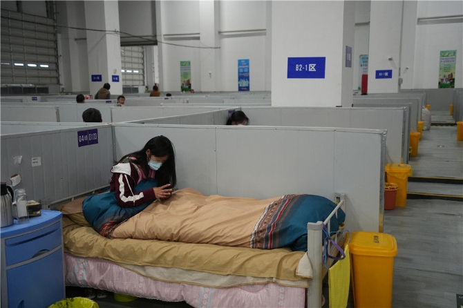 4月16日,患者在上海临港方舱医院休息。新华社记者 杨有宗 摄