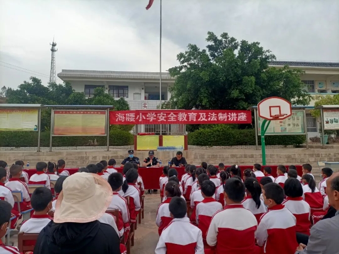 活动现场,程海派出所的民警们从提高安全防范意识、课间安全、交通安全、食品安全、财务安全等方面,教育师生用法律规范自身言行,增强自我保护意识,提醒同学们养成良好的生活习惯和学习习惯,强化安全防范意识,一起构建平安、美丽、和谐校园。
