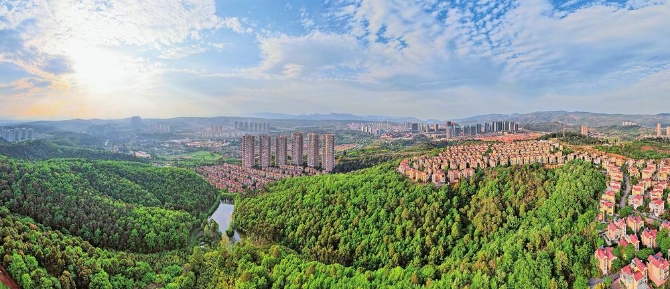 安宁市太平新城森林覆盖率超过70%,全年空气质量优良。近年来,随着交通路网不断完善,太平新城已融入以昆明主城区为核心的半小时生活圈,成为昆明主城的“后花园”,是市民养生宜居的新去处。 图为太平新城一景。云南日报 记者张彤 摄