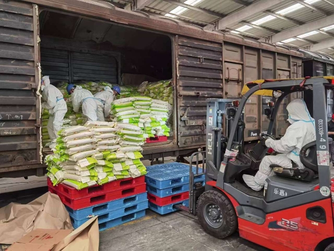4月16日22时35分,满载600万斤黑龙江大米的援沪专列经过60个小时疾驰,行程2600余公里,安全抵达上海何家湾站。次日早上,该批物资被送到上海乐惠物流股份有限公司专用线卸车。