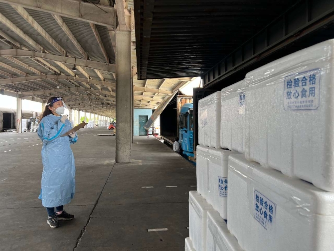 4月15日15时32分,西藏支援上海的47507次保供物资专列经过113小时、4600多公里的长途旅程,从西藏自治区日喀则西站抵达上海北郊站。该趟专列由8节货车编组而成,100吨牦牛肉、3000吨天然饮用水等民生保障物资在快速卸车后,被短驳送往宝山区冷链城配中心等仓储点。