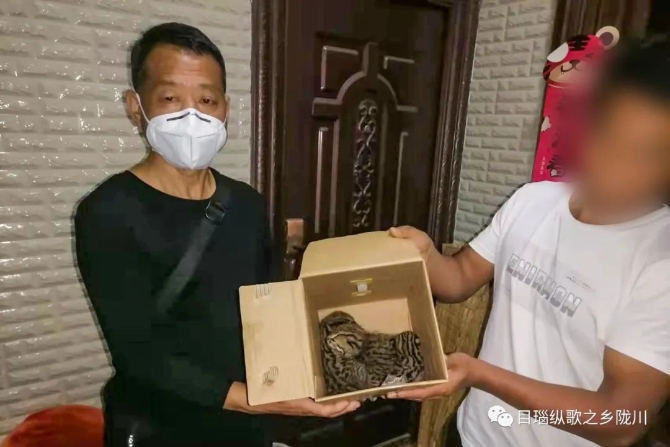 2022年4月12日,陇川县章凤林业站工作人员接到群众来电后,立即与陇川县林业和草原局野生动植物保护和拯救收容站工作人员一同前往群众家中查看。经工作人员现场鉴定,该动物幼崽是豹猫,属于国家二级保护动物。