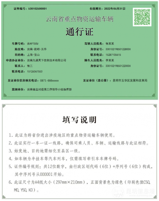昆明信息港讯 记者张水燕 4月17日,记者从云南省交通运输局获悉,“云南省疫情防控重点物资跨省运输车辆通行证(以下简称《通行证》)线上办理系统”自4月17日起正式启用,该系统可实现《通行证》线上申领、审核、发放、亮证、核验及回收各项服务。