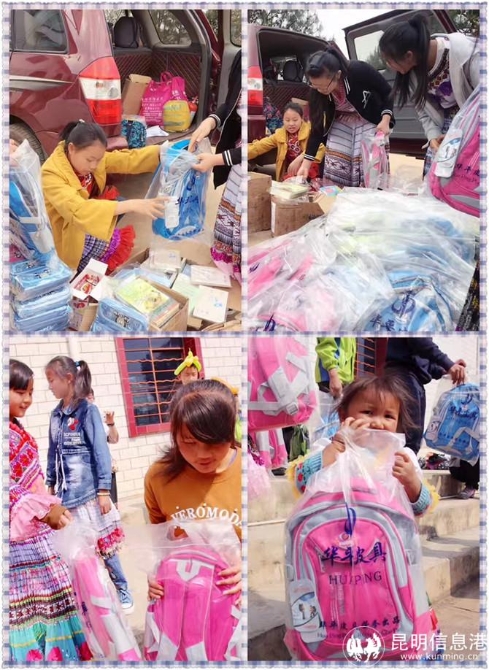 志愿服务活动中为小朋友们送上新书包。供图