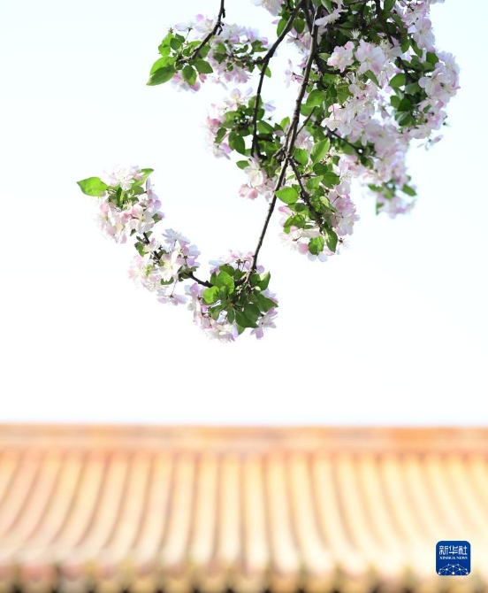 近日,北京故宫博物院内的海棠花竞相绽放,芳香四溢。