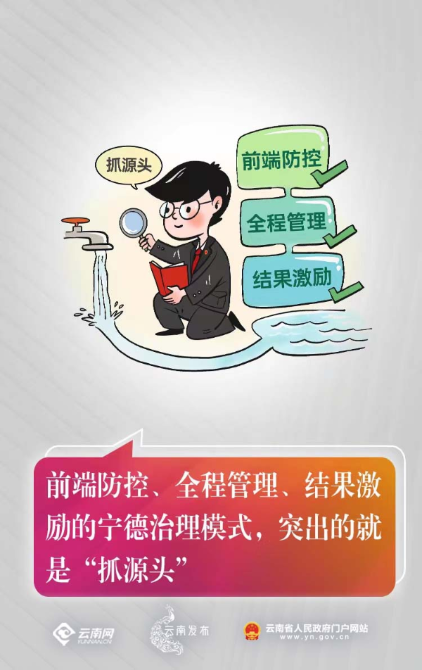前端防控、全程管理、结果激励的宁德治理模式,突出的就是“抓源头”。唯有党政机关带头尊崇法治、敬畏法律、诚信履约,才能让建设法治化营商环境真正成为全社会的自觉行动,正所谓清渠活水源头起。