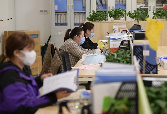 ↑在上海由由农业科技公司位于崇明区中兴镇的种植基地内,工作人员在办公室忙碌(4月19日摄)。