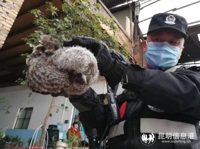 昆明信息港讯 记者合宇聪 日前,昆明市公安局特警支队五大队民警在工作中营救两只误入工厂的猫头鹰。被救下的猫头鹰被特警移交盘龙森警大队妥善处理。