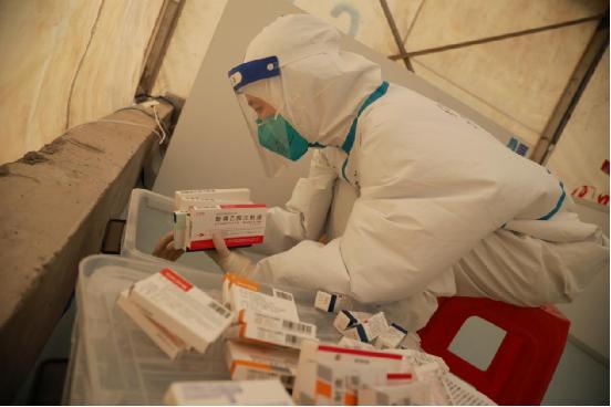 韦兆玲在舱内整理患者日常药品