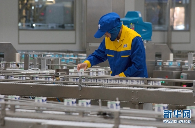乳品包装线(摄于4月2日)。(新华网 赵普凡 摄)