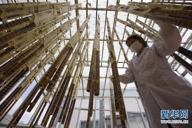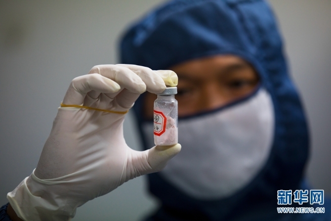 工作人员展示来思尔乳业自主选育的乳酸菌菌种(摄于3月30日)。(新华网 赵普凡 摄)