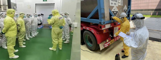 华谊集团下属的各个连续生产型企业,同样采取封闭管理模式。针对现场生产特点,各个下属公司提前制定了多套生产预案。考虑到区域封控和交通管制,华谊和供应商、物流公司加强沟通,把一部分车运调整为水运,避免出现原料断供、产品涨库。