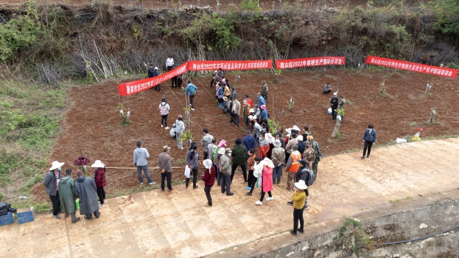 同时,西山区农业农村局针对特色优势水果发展不充分不平衡的实际,于2021年1月组织实施了黄金油桃引种试验项目,从文山州砚山县引进桃新品种4个、691株,其中:黄金油桃600株、油蟠桃83株、毛蟠桃4株、白油桃4株,选定海拔高度1758m、1870m、2040m、2165m的4块园地作为试验地。