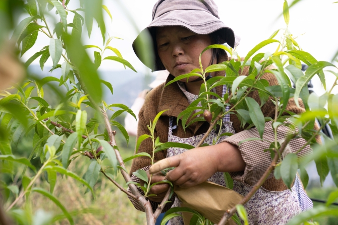 西山区农业农村局技术人员正在现场为村民们演示病虫害防治、苗木定干、整形修剪、果实套袋等技术措施,正在试验地劳作的村民表示:“经过农业农村局老师们的指导,以前蜜蜂叮咬,虫害等问题得到了解决,现在的油桃,外观好看了,口感也更好了,上市也有保障了。”